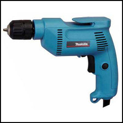 2626 p. дрели MAKITA 6408:Компактная и легкая дрель Makita 6408 давно снискала признание у профессионалов и мастеров-любителей. В прочном пластмассовом корпусе, армированном стекловолокном, скрывается надежный механизм с высоким производственным потенциалом. Во многом это обусловлено новым усовершенствованным двигателем Макита, примененном в данной модели. Дрель Макита 6408 предназначена для сверления отверстий в дереве и металлах. Она оснащена встроенными электронными системами плавного пуска и регулировки числа оборотов, обеспечивающими высокую точность сверления в материалах различной плотности. Для крепления рабочих насадок в дрели Makita 6408 используется быстрозажимной патрон диаметром 10 мм. Благодаря этому смена оборудования производится мгновенно и не требует излишних усилий. Для того чтобы зажать или освободить сверло достаточно, придерживая кольцо, провернуть рукой муфту по или против часовой стрелки. Дрель Макита 6408 разработана в соответствии с действующими евростандартами и оснащена двойной изоляцией, что позволяет подключать ее к незаземленным розеткам. Кроме того, стандартная шейка шпинделя (43 мм) обеспечивает возможность крепления данной модели на стойках сверлильных станков. Малый вес и компактные габариты дрели Makita 6408 обеспечивают малую утомляемость в процессе работы, а конструктивные особенности (расположение оси патрона) делают инструмент оптимальным для сверления отверстий в «узких» местах – в углах, под потолком и пр. Особый комфорт в работе с дрелью Макита 6408 обеспечивается эргономичным корпусом с удобной рукояткой, курковым выключателем с кнопкой фиксации для длительной непрерывной работы, переключателем реверса, расположенным, что называется, «под рукой» и низким уровнем шума.