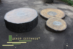 Деревянный спил-пенёк для декорирования бетонных колец выступающих над уровнем земли не более 30 см.