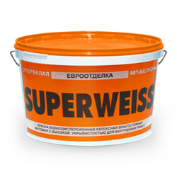 Уникальная водоэмульсионная латексная краска SUPERWEISS (14 кг) позволяет покрывать даже чрезвычайно некачественные и грязные поверхности. Акриловое связующие, применяемое в составе этого вещества, обеспечивает высокую вязкость, что позволяет краске фиксироваться на любой поверхности. Если вы нуждаетесь в покраске стен и потолков, то краска Супервайс поможет вам в этом. Качественное покрытие может использоваться как во влажных нагруженных помещениях, так и в сухих комнатах с мягким температурным режимом. Состав этого вещества допускает покраску поверх старых красочных слоев. Описание: Супербелая, матовая, износостойкая, пылеотталкивающая, экономичная, паропроницаемая, стойкая к мытью и моющим средствам, пожаровзрывобезопасная, не сдержит растворителей. Область применения: Для высококачественной окраски стен и потолка по штукатурке, бетону, гипсу и гипсокартону, структурным обоям и обоям из стекловолокна. Расход: Около 6,5 м/л или 150 мл/м2 в один слой по гладкой поверхности. Состав: Молотый мрамор, оптический отбеливатель, латекс, загуститель, наполнитель, антисептик.