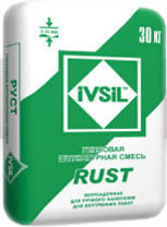 Гипсовая штукатурка Ивсил Руст, 30кг Сухая штукатурная смесь на основе гипсового вяжущего с легким наполнителем и полимерными добавками. Предназначена для ручного оштукатуривания стен и потолков из бетона, газобетона, кирпича, пенобетона, ГВЛ, каменных поверхностей, внутри помещений с нормальной влажностью. Легко набрасывается и разравнивается, обладает хорошей пластичностью, прочностью и адгезией; экологически чистая. При высыхании не образует трещин, создает идеально ровную и гладкую поверхность. Расход Средний расход 0,9 - 1,1 кг сухой смеси на 1 м.кв. поверхности при толщине слоя раствора 1 мм. Точный расход зависит от степени ровности (рельефа) основания. Подготовка основания Основание должно быть сухим, прочным, очищенным от пыли, грязи, масел, остатков меловых и известковых растворов, а также старой штукатурки и краски. Перед проведением штукатурных работ, основание необходимо обработать грунтовкой IVSIL БАЗОВАЯ, а гладкие бетонные основания грунтовкой IVSIL BASIS-BETON. Температура воздуха и основания должна быть от +5°C до +30°C. Приготовление раствора Гипсовая штукатурка готовится следующим образом: сухую смесь высыпать в емкость с чистой водой из расчета 1 кг сухой смеси на 0,45 - 0,5 л воды и тщательно размешать машинным способом до получения однородной пластичной массы без комков и сгустков. Приготовленный раствор использовать в течение 1 часа! Применение Готовый раствор в течение 20 минут после затворения нанести на поверхность мастерком или кельмой слоем от 5 до 30 мм и разровнять правилом. После начала схватывания (45-60 минут после затворения) раствора поверхность выровнять металлической трапецеидальной рейкой; через 15 - 20 минут поверхность увлажнить и затереть губчатой теркой, а затем окончательно загладить металлической теркой. Через сутки поверхность снова увлажнить и повторно загладить. Полученная поверхность не нуждается в последующем шпаклевании. При необходимости выравнивание можно выполнять в несколько слоев, делая на первом, еще мягком слое, насечки и после полного его затвердевания, наносить второй слой. Оборудование, инструменты и емкости после использования промывать водой!