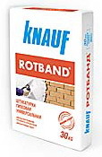 Ротбанд КНАУФ представляет собой сухую штукатурную смесь, которая имеет в своей основе гипс и различные добавки для повышения адгезии. Применяется гипсовая штукатурка ROTBAND KNAUF для ручного оштукатуривания различных поверхностей (потолков, стен) с твердым основанием (бетон, цементная штукатурка, кирпич и другие) или поверхностей из пенополистерола.Оптимальный эффект достигается при использовании штукатурки в помещениях с нормальной влажностью воздуха, допускается также в ванной и кухне.Продается КНАУФ Ротбанд> в бумажных мешках объемом 30 кг. Предварительная подготовка рабочей поверхностиДо начала работ поверхность необходим очистить от лишних веществ (грязи, пыли, масла) и убрать все ненужные предметы (устранить явные выступы, защитить металлические элементы от попадания влаги).Рабочая поверхность должна быть сухой и иметь температуру не ниже + 5°С.Расход материалаДля оштукатуривания 1 кв. м. рабочей поверхности слоем штукатурки толщиной примерно в 10 мм, понадобится приблизительно 8,5 кг сухой смеси Ротбанд КНАУФ.Расход грунтовой смеси при предварительной подготовке поверхности равен:- КНАУФ Бетоконтакт 0,3 кг/м2;- КНАУФ Грундирмиттель 0,1 кг/м2. ГрунтованиеПри работе с поверхностями, которые обладают высоко влагопоглащаемостью (керамический кирпич, газобетон и другие), необходима предварительная грунтовка, которая осуществляется вручную (валиком, кистью) или механическим способом (при помощи распылителя грунтовки).Грунтовку разводят с водой в пропорции 1:3 – 1:5. Предварительная грунтовка необходима, чтобы предотвратить неравномерное схватывание штукатурки.Кроме этого, гладкие и сухие поверхности также желательно грунтовать смесью КНАУФ Бетоконтакт для улучшения адгезии.Поверхности, состоящие из КНАУФ листов (ГКЛ) можно также предварительно обработать смесью КНАУФ Бетоконтакт. После предварительных работ необходимо дать грунтовке высохнуть, затем поверхность очищается от пыли и только после этого рекомендуется нанесение шпаклевки Ротбанд КНАУФ. Установка профилейДля установки маячковых профилей необходимо на рабочей поверхности на расстоянии в 30 см нанести штукатурную смесь Ротбанд КНАУФ. В том месте, где наносилась смесь необходимо вдавить маячковые профили и выровнять их в одной плоскости. Максимальный шаг профилей не должен быть больше длины правила. Защитные угловые профили устанавливаются следующим образом: приготовленную смесь Ротбанд КНАУФ наносят на внутреннюю сторону профилей, шаг установки которых около 30 см. Затем угловые профили устанавливаются в одной плоскости с маячковыми путем прижатия углового профиля от середины к краю.Технические характеристики- толщина слоя - максимальная - 50 мм, минимальная - 5 мм;- насыпной вес - 730 кг/м3;- зернистость - до 1,2 мм;- выход раствора из 100 кг смеси - 120 л;- расход ~8,5 кг/м2;- высыхание ~ 7 суток;- прочность - сжатие >2,5 МПа, изгиб >1,0 МПа;- плотность ~ 950 кг/м3;- коэффициент теплопроводности - 0,25 Вт/м·К.